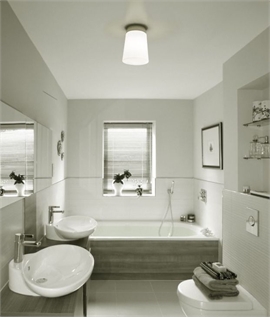 Ip44 rated are designed for use in bathrooms and other environments where water spray is a risk. Zone 2 bathroom lighting needs to achieve at least ip44 protection to keep you safe. Outside zones beyond zone 2 when the size of a bathroom extends beyond zones 0 1 and 2 portable equipment can be used if it s flex length does not enable them to be used in zone 2. Bathroom ceiling lights led light sora suitable for ip44 integrated leds 3000 kelvin 880 lumen aluminium body living rooms hallways. Now £109.00£90.83 was £156.00£130.00 | save: Led light and zone advice for bathroom ceiling light. Bathroom ceiling light ip44 polished chrome finish. Ideal ip rated products for bathroom task lighting are the bathroom wall light, wilton bathroom light, bari bathroom light, kyoto bathroom light, penne bathroom light and grissini bathroom light. Two light compact fluorescent ceiling mounted fixture in brushed nickel with white acrylic diffuser. Astro lighting denver globe bathroom ceiling light polished chrome and glass. A bathroom is an important space in any home. The right bathroom lighting is an important factor and we have a stunning range for you to choose the ideal ceiling light for your home. Bathroom downlights are an excellent choice for zone 2 bathroom downlights.